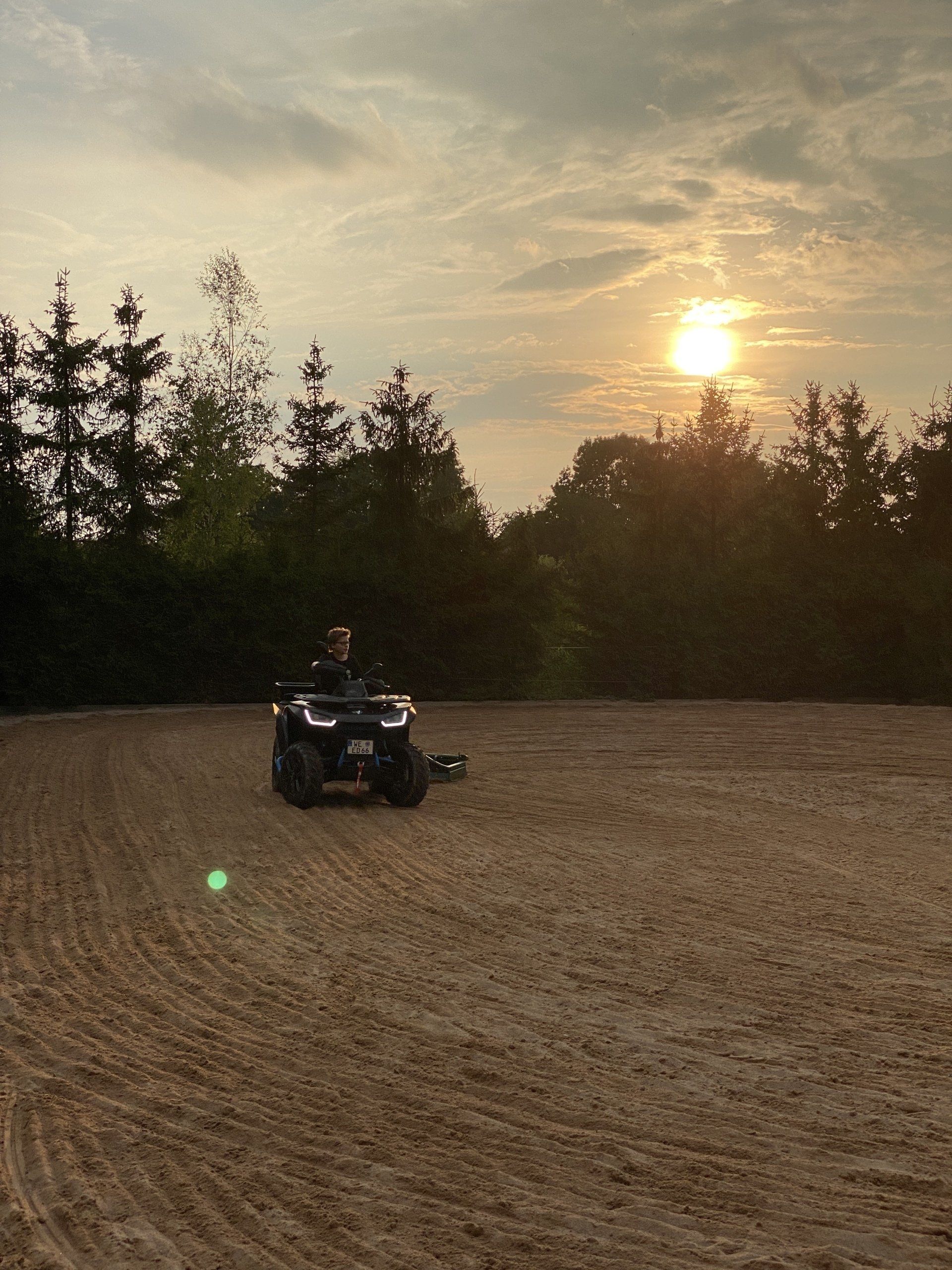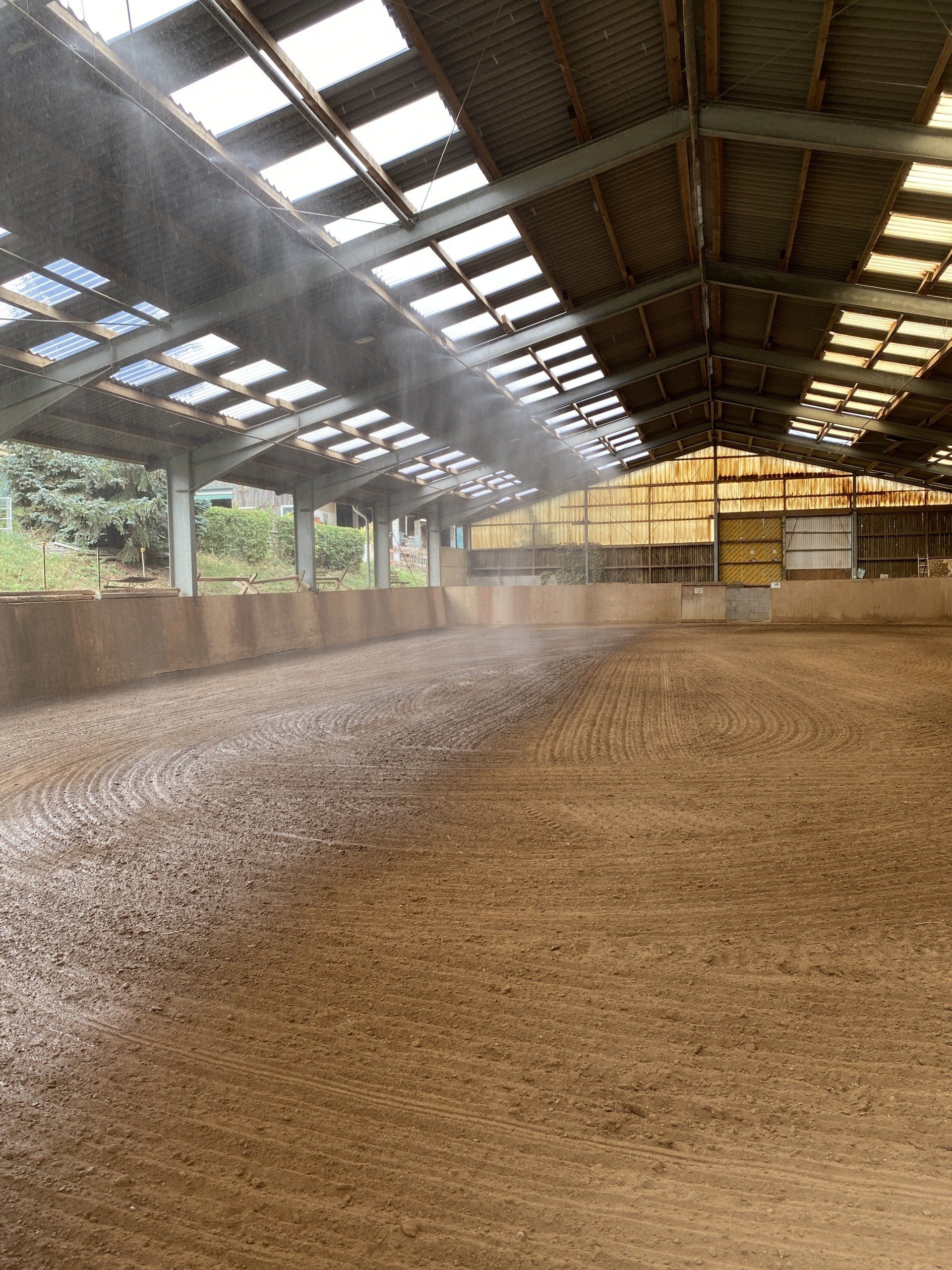 Unser Offenstall hat eine große Liegefläche und verschiedene Untergründe. Täglicher Weidegang in gemischter Herde ist inklusive.